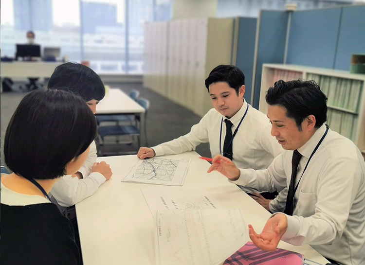 ターニングポイントは、入社7~8年目に担当した東京都の高潮事業に伴う道路の改良業務でした。この時は先輩が橋梁・護岸の設計として担当しており、最初、道路担当の私は先輩の指示で動けば良いと思っていました。しかし道路は関係する部署が多く、道路技術者である私でないと分からないことが増え、次第に顧客おきゃくさまから私に直接問合せが来るようになりました。この時、私がこのプロジェクトを動かそうと決めました。以降、指示を待つのではなく、私が率先して顧客や関係部署と話し合い、私がどうしたいのか、を自分で考え、関係部署を調整しながら成果のとりまとめを行いました。この時、私の仕事に対する取組み方が大きく変わったと思います。